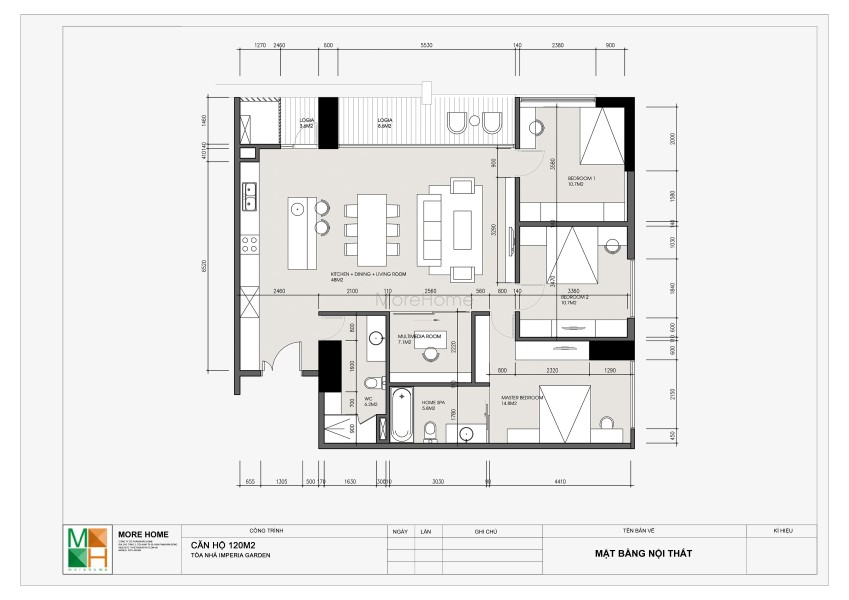 Thiết kế căn hộ mẫu 120m2 dự án Imperia Garden City