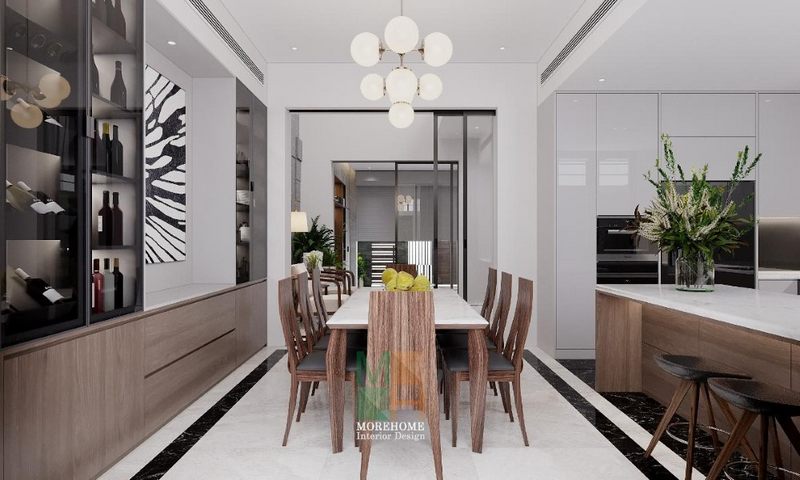Thiết kế nội thất phòng ăn cạnh bếp đẹp hiện đại cho nhà phố