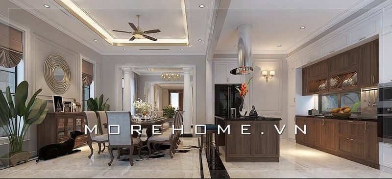 Tạo ra một thiết kế nội thất phòng bếp biệt thự gỗ tự nhiên đầy sang trọng và tiện lợi cho người nội trợ.