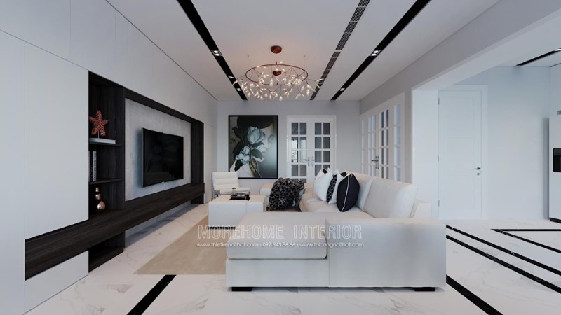 Thiết kế nội thất hiện đại vơi tông màu trắng đơn giản